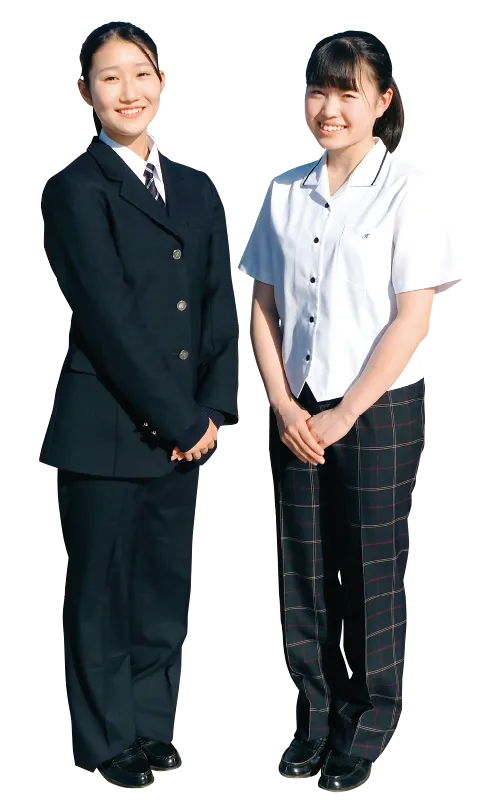 女子のスラックスは2種類(紺無地・紺チェック)から選択できます。