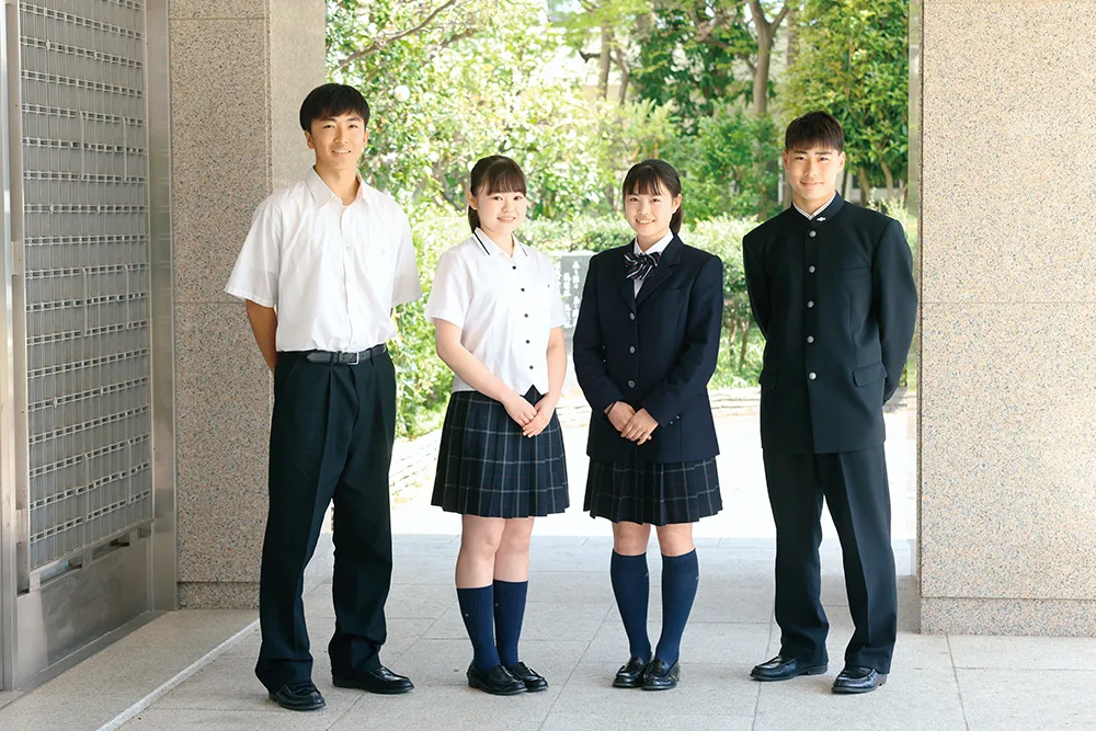 男子は学生らしさを大切にした伝統的な詰めえりタイプ。