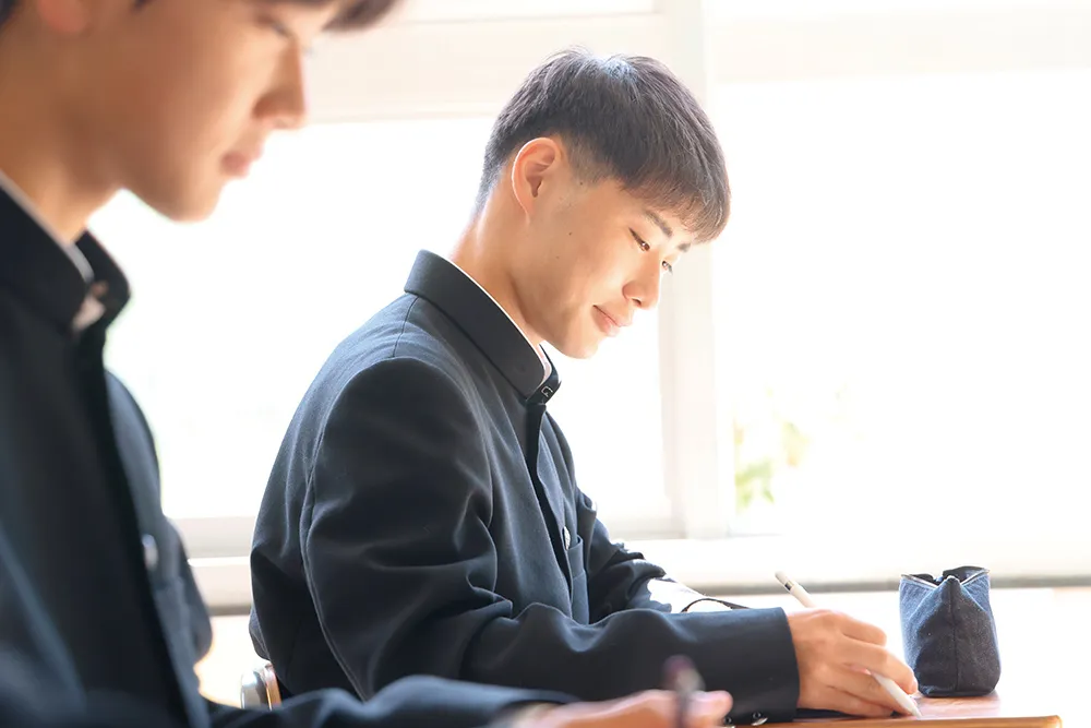 受験コースは、それぞれが自分の目標に向かって切磋琢磨できるコースです。クラスメイトが頑張っている姿がとても刺激になり、自然とモチベーションも高まります。個人的に成績が伸びたのは英語。授業がとても丁寧でわかりやすいですし、検定にも皆頑張って取り組んでいます。私も3年のうちに英検準1級を取得するつもりです。受験勉強に関しては、自分なりのタスクを決めて、それを毎日必ずこなすようにしています。スケジュールに余裕を持たせず、詰込み気味にタスク管理をするのが私なりのスタイル。将来の目標はまだ決まっていませんが、幅広い学びによって視野を広げられる大学に進めるよう、一般選抜に向けて努力したいと思っています。