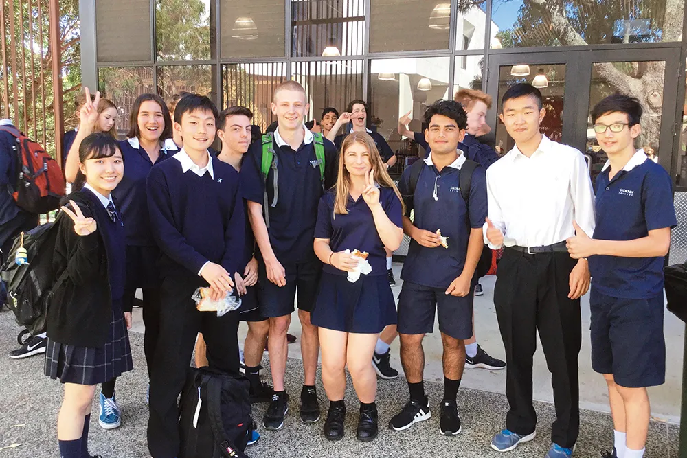 オーストラリアの中高一貫校との交換交流を行っています。語学留学を目的とした12日間の相互的な交換交流プログラムで、留学の受け入れと訪問とを隔年で実施。訪問する際は春期休暇中に夏のオーストラリアで現地の学校に通う留学体験。受け入れの際は留学生とともに過ごす学校生活。お互いの学校の生徒宅にホームステイするので、語学力だけでなく国際感覚が養われ、より深い交流をすることができます。