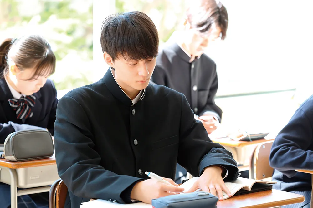 個々の可能性を広げ、幅広い進路選択を実現させるために全教科をバランスよく学習します。総合的な探究の時間に行う課題発見・問題解決学習により、創造的、能動的な力を育てます。また、宗教教育や進路指導のほか、スタディサプリの活用や基礎・発展講座、長期休暇中の特別講習など、入学後の早い段階から学習サポートを充実。じっくりと自分の将来を見つめ目標に向かって専心できるようサポートしています。