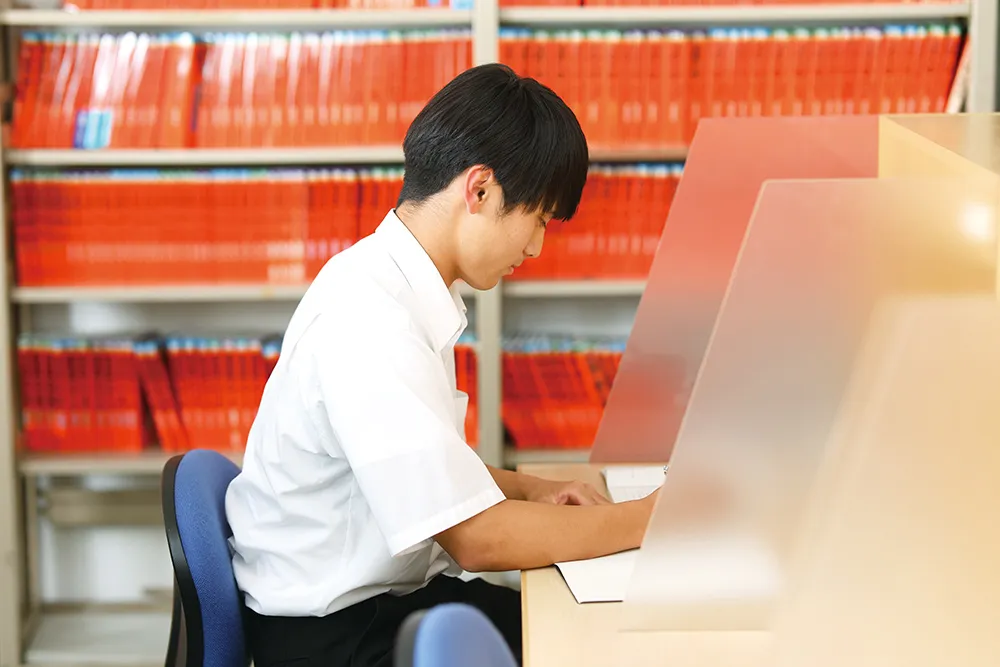 昼休みと放課後に開放しています。進路学習室では進路情報誌や、大学の過去問題集(赤本)5年間分が閲覧可能です。自習室として利用する生徒が多くいます。赤本の種類や量も充実しており、試験前や受験期になると、満席になる程利用者が増えます。