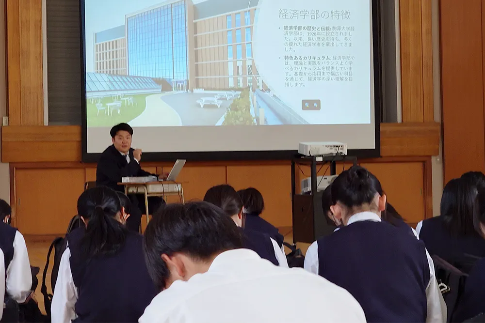 分野別ガイダンスでは、駒澤大学の各学科の教授から高校生を対象とした模擬授業を受けることができます。また、卒業生ガイダンスでは、駒澤大学に進学した卒業生から進学後の近況について直接話を聴くことができるため、進路選びの要として欠かせないプログラムとなっています。